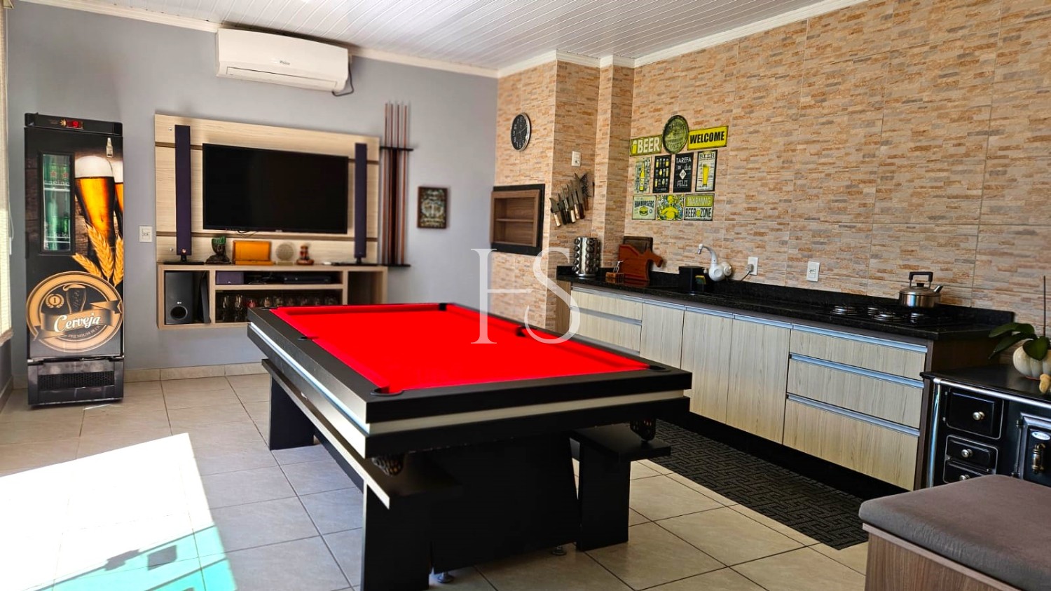 Quiosque espetacular, equipado com churrasqueira, fogão a lenha, cervejeira e até mesa de bilhar